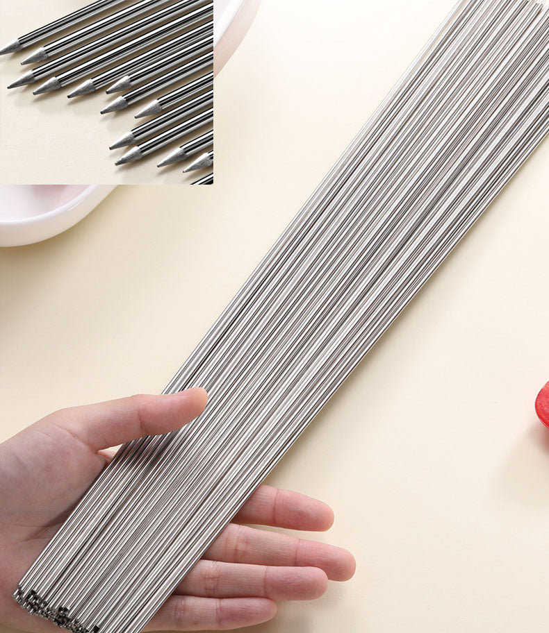 100pcs L 35cm Stainless Steel BBQ Skewers Round Roast Needle Stick Shish Kebab