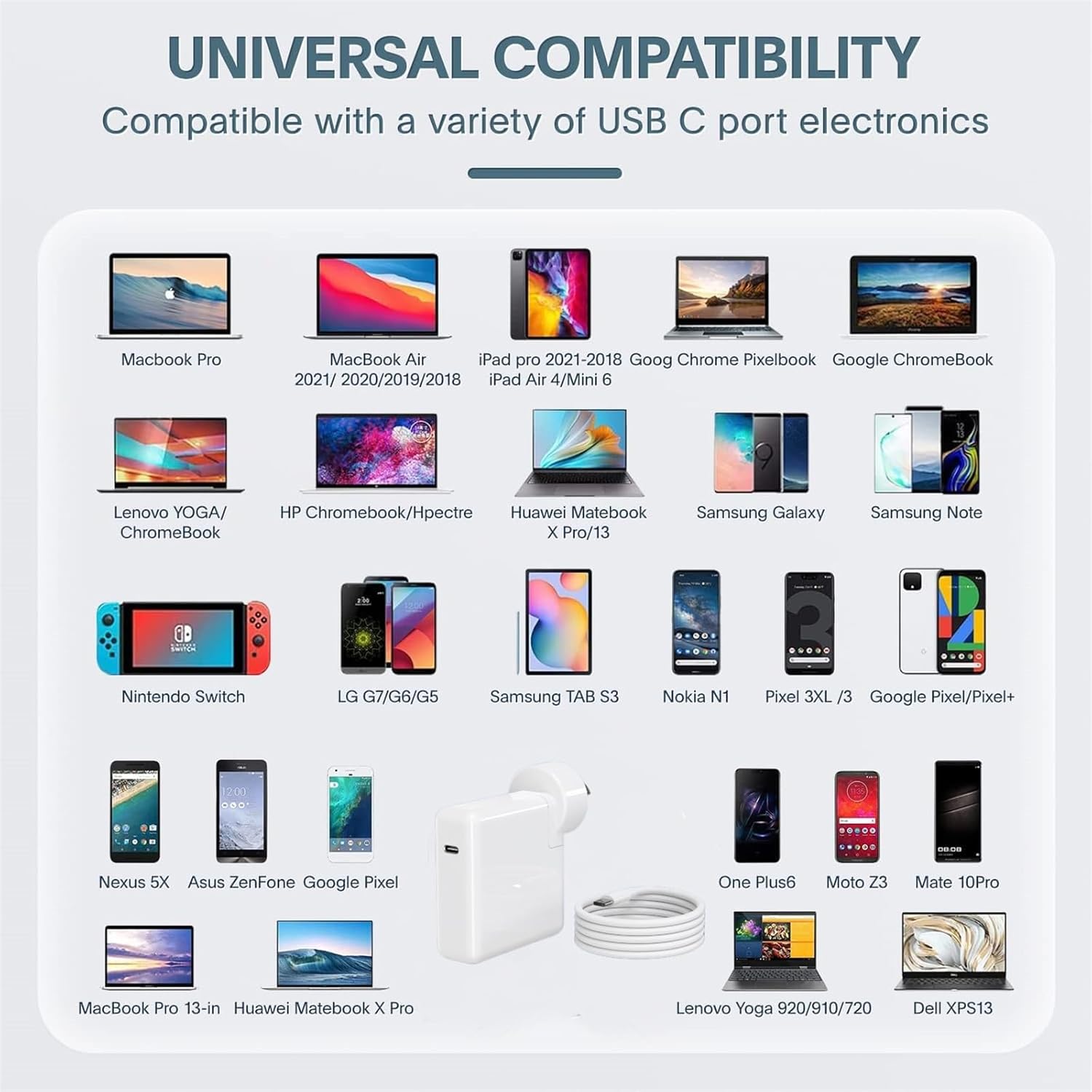 Upgrade your charging experience with the 118W USB-C MacBook Pro Charger, engineered for blazing-fast performance, broad compatibility, and premium safety features. Designed to power even the most demanding laptops and tablets, this high-efficiency charger supports Power Delivery 3.0 and intelligently adapts to your device's power needs.