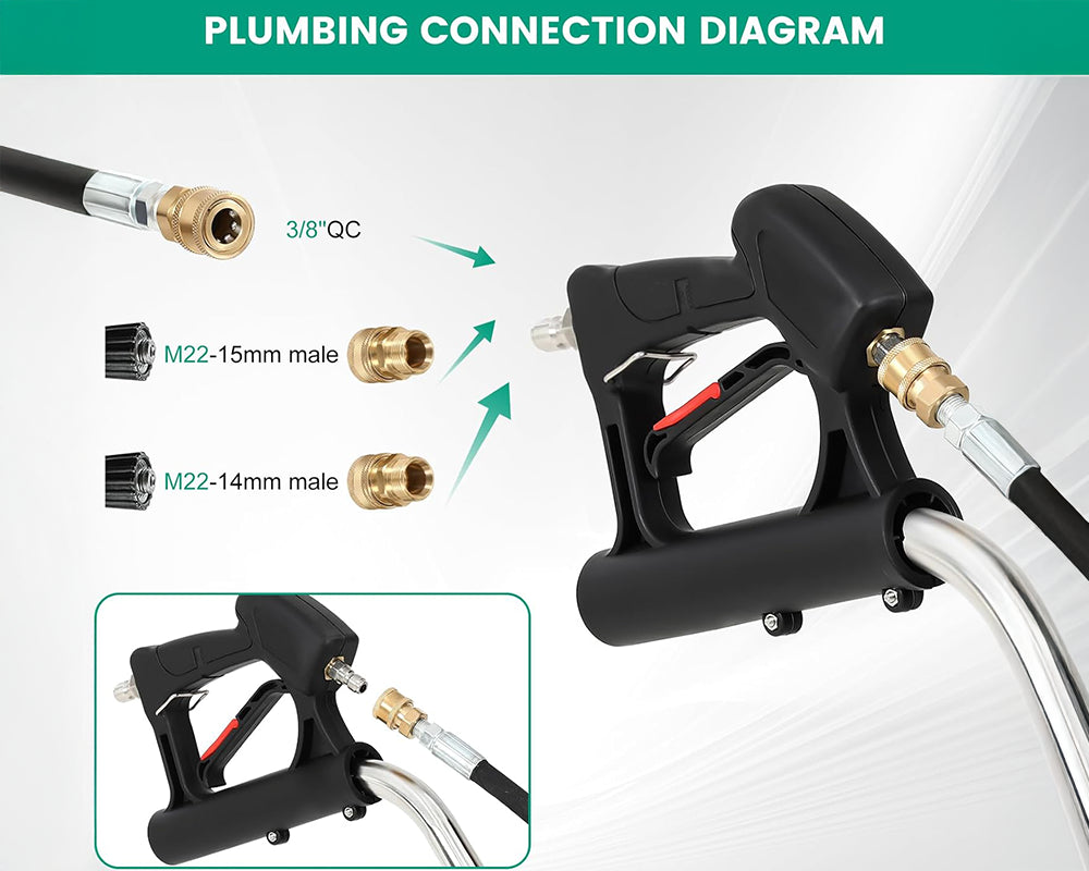 - Quick Connect Plug: Comes with a 3/8" quick-connect plug to easily attach to your pressure washer hose for fast setup and breakdown.