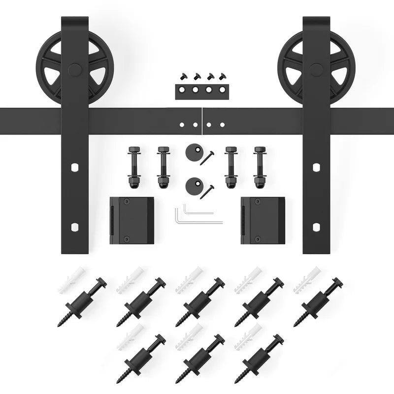 - Crafted from high-quality carbon steel Barn Door Hardware with a frosted black finish, ensuring strength, corrosion resistance, and longevity.