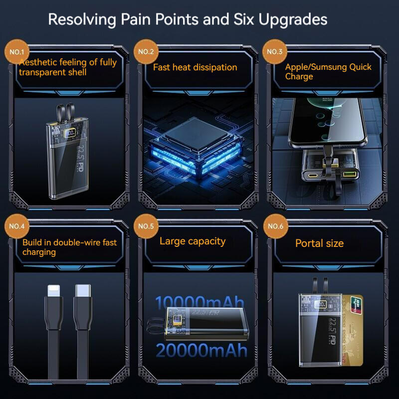 - Hight Features: Digital Display, Support Quick Charging, Built-in Cables