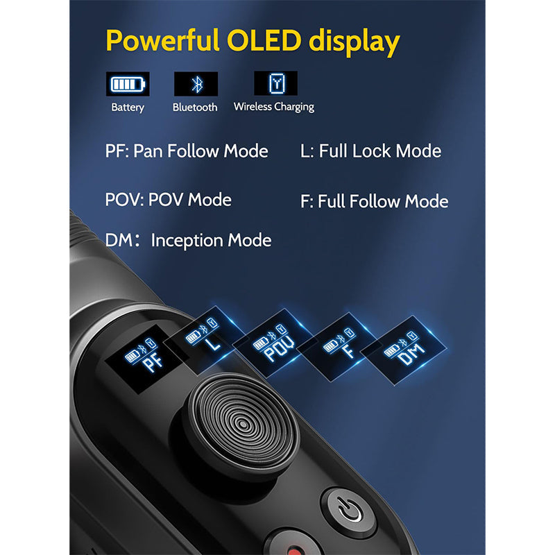 - OLED Display: The built-in OLED display shows gimbal mode and battery status, allowing for easy monitoring and control.