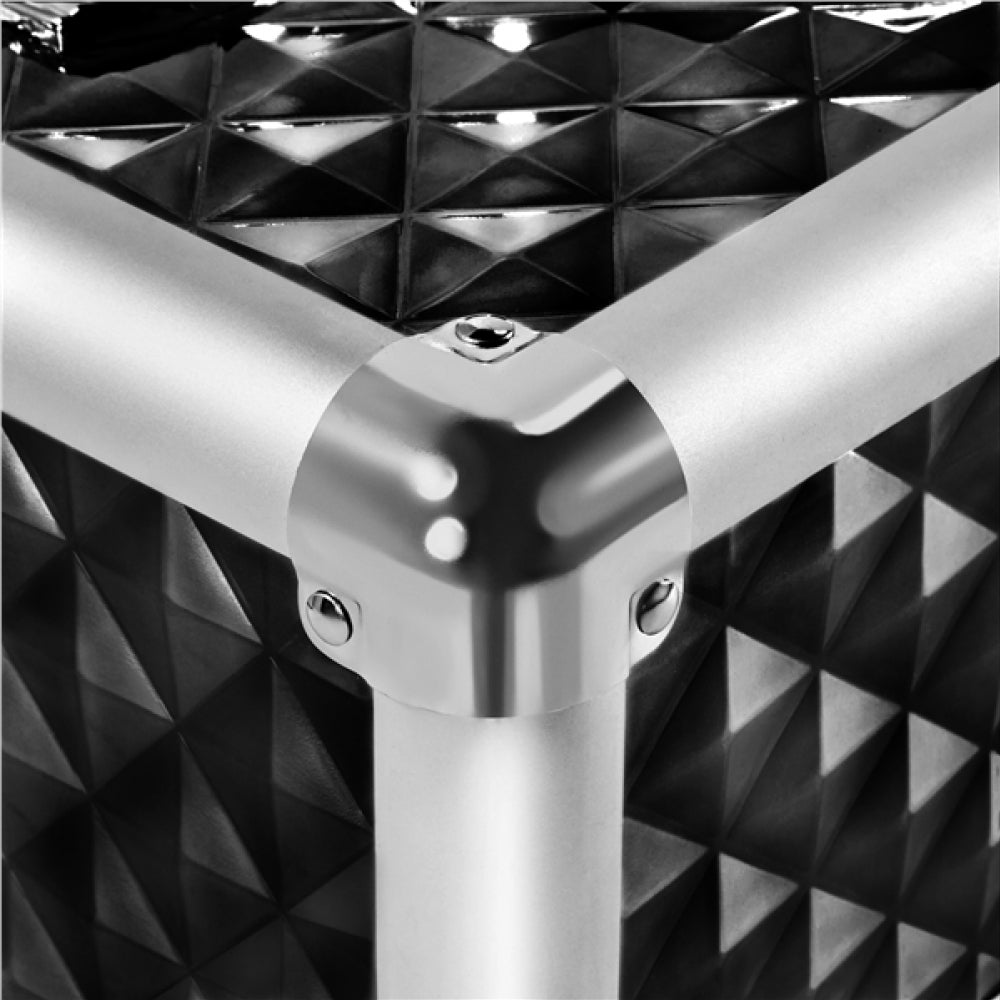 When you regularly travel with makeup or want to store a lot of makeup in an organized way, a rolling makeup train case is ideal. Made of CARB P2-compliant manufactured wood finished with a waterproof plastic surface and a sturdy aluminum alloy frame, this makeup trolley boasts high strength and good durability. The top cosmetic box can be removed at any time for your different travel needs and relieve luggage burden for short trips. For convenient mobility, this rolling makeup train case features an aluminum telescopic pull handle extending up to 96cm/38" and four universal wheels. The holographic pink with embossed diamond texture also makes this glittery makeup train case highlight your fashion taste. Best of all, two lockable latches with two keys on the top of the case keep your cosmetics and precious jewelry safe when unattended.