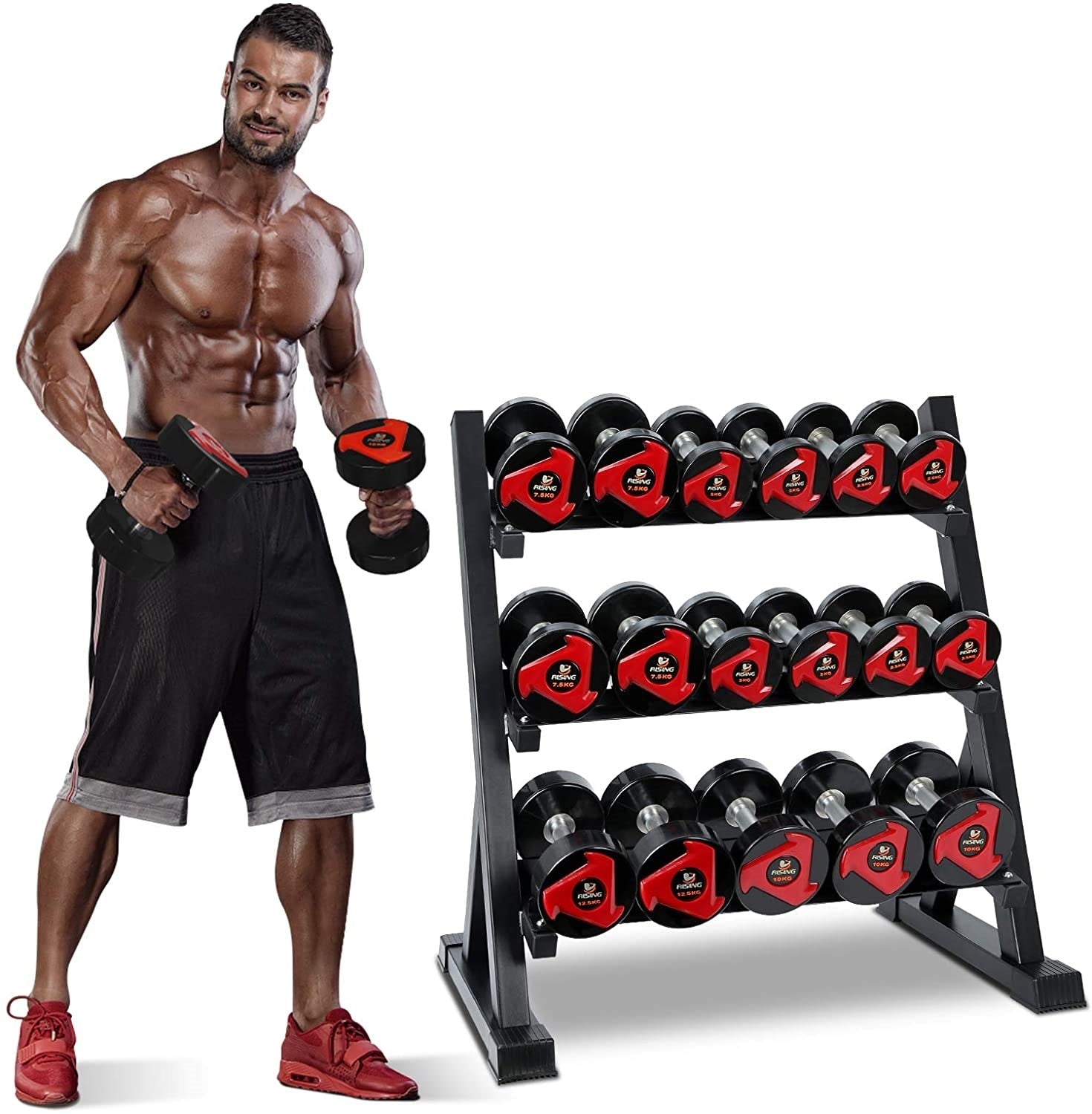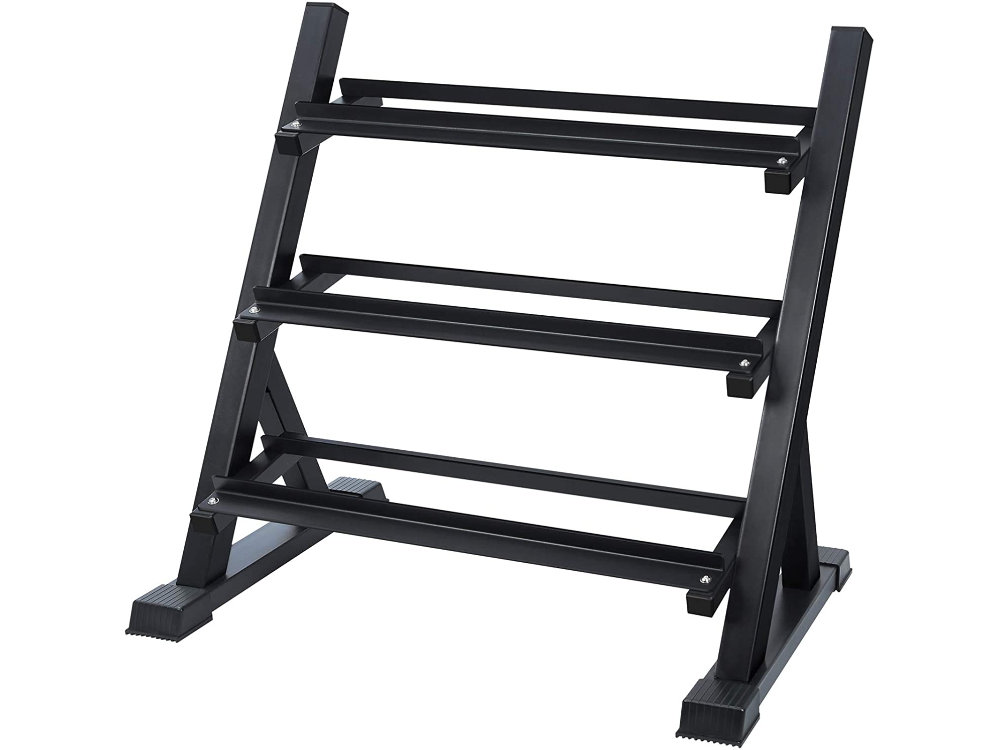 -3-level angled dumbbells for easy access to the dumbbells.