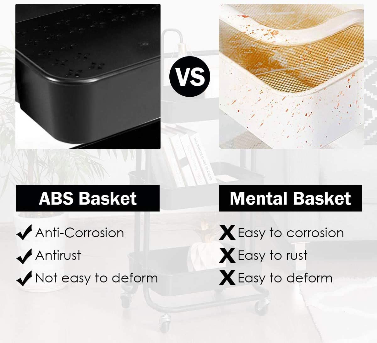 Organize your space efficiently with the Storage Trolley Cart, designed for durability and versatility. Made from high-quality carbon steel frame and ABS plastic trays, this rolling cart is anti-corrosion, scratch-resistant, and waterproof. The hollow tray design promotes air circulation and drainage.