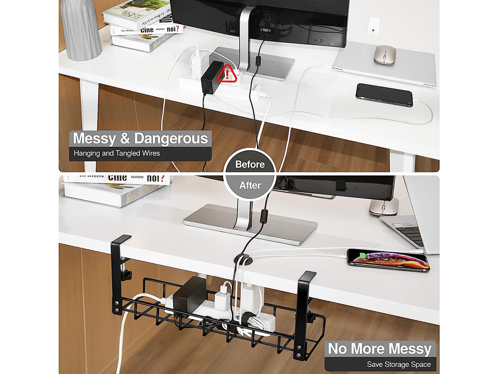 Great Quality: Our under-table cable management tray is Made of premium quality metal, so it is Safe, Sturdy & Durable. The thickness of the wire is up to 4mm, which has a super load-bearing capacity.