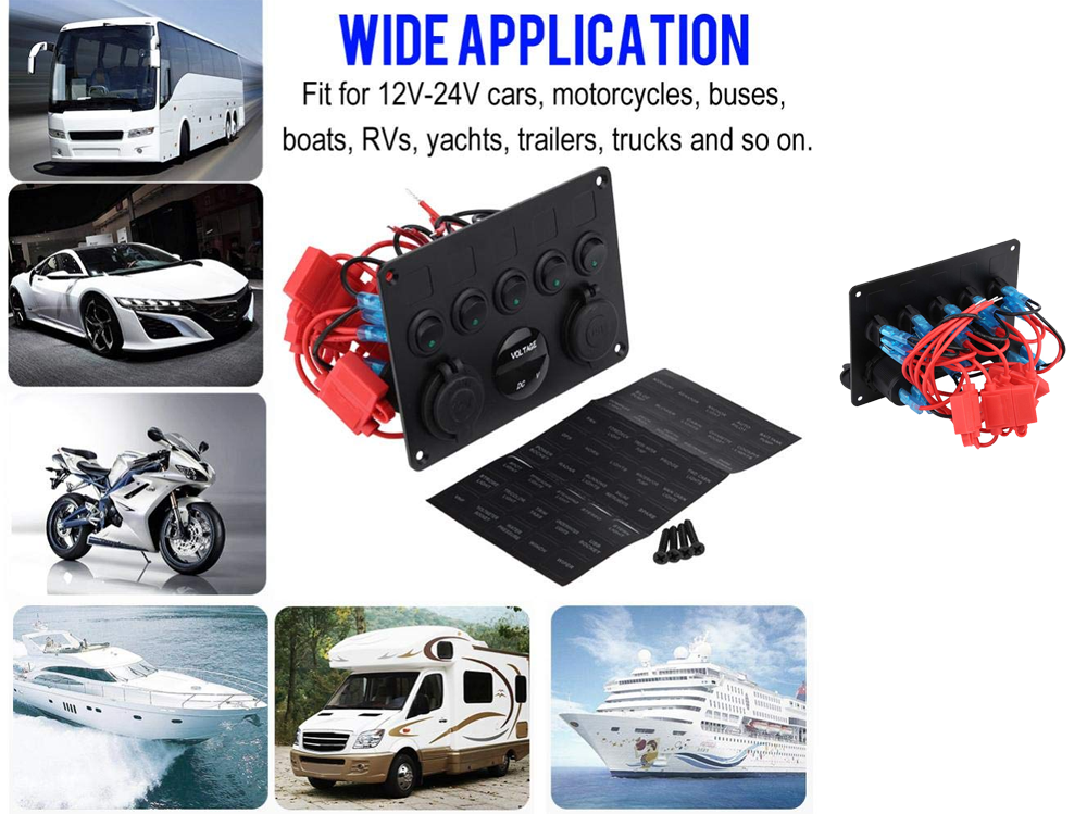 This rocker switch panel is ideal for managing power to lights, navigation units, pumps, or chargers in automotive, marine, and RV settings. Whether you're on the road or at sea, the rocker switch panel keeps your systems running efficiently and safely.