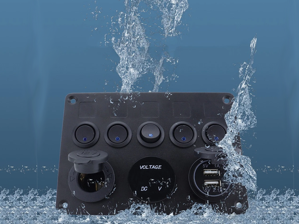 Multifunctional 5-Position Rocker Switch Panel with USB Ports & Voltmeter – Waterproof Control Panel for Vehicles, Boats, and RVs