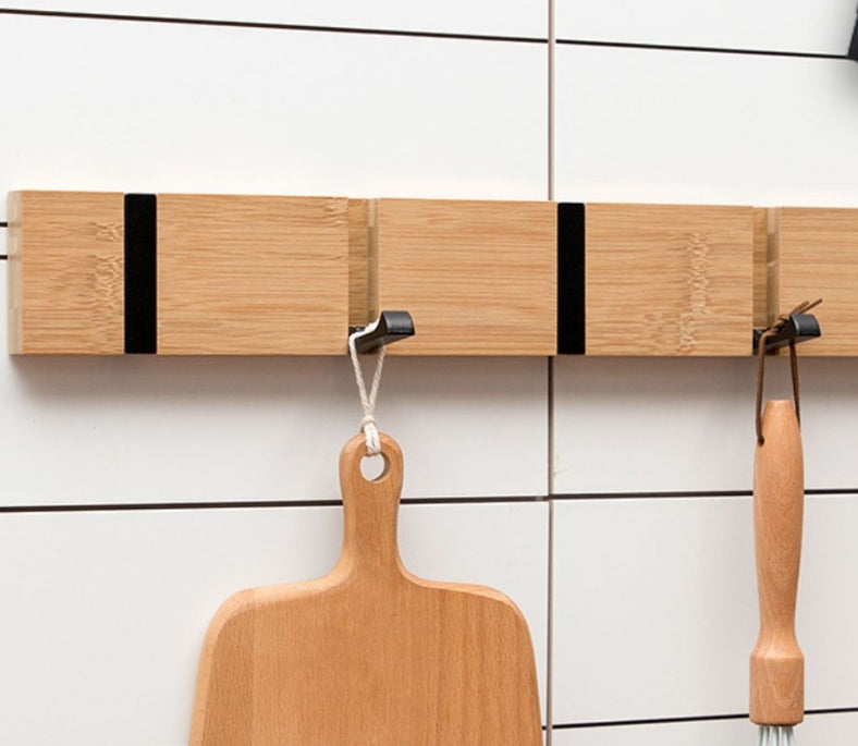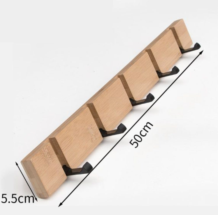 5 Hooks Hanger Row Hook Wall Coat Hanger Wooden Peg Farmhouse Key Holder Bamboo