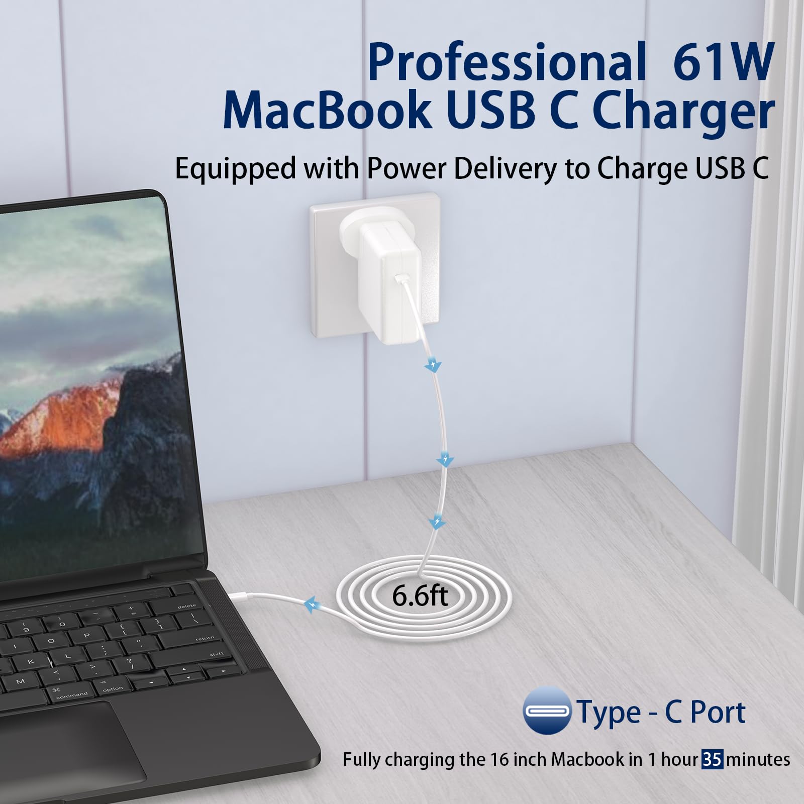 61W Dual USB C Fast Charger for MacBook Pro with 6.6ft (2m) Cable