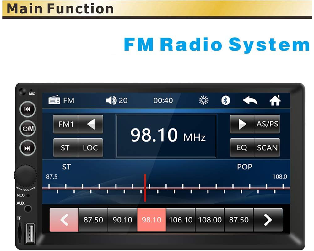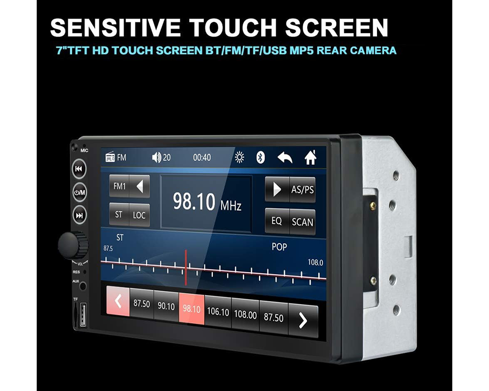 - Large 7 inch car stereo with responsive touch screen control