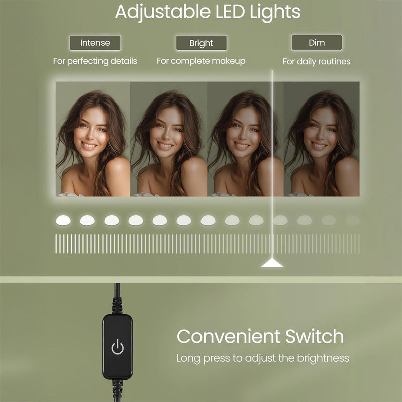 - Sleek Cable Management: Hidden cables behind the mirror ensure a clean, modern look, free from visible cable messes. The aesthetic is streamlined and tidy, adding a sophisticated touch to your room.
