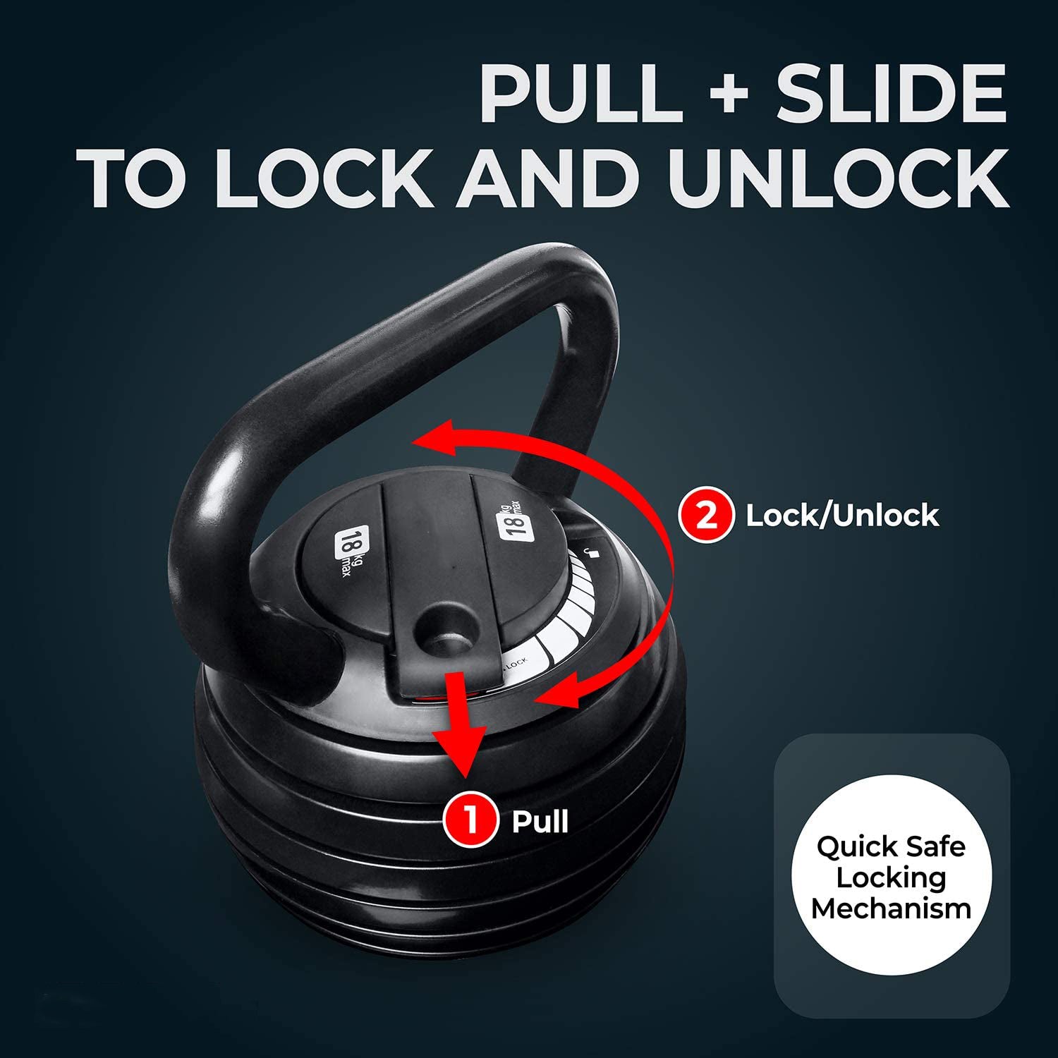 7-in-1 Adjustable Kettlebell 3-18kg (7 Weight Selections) with Quick Safe Locking Mechanism use in Home Fitness Gym - Suitable for Men and Women Strength Training