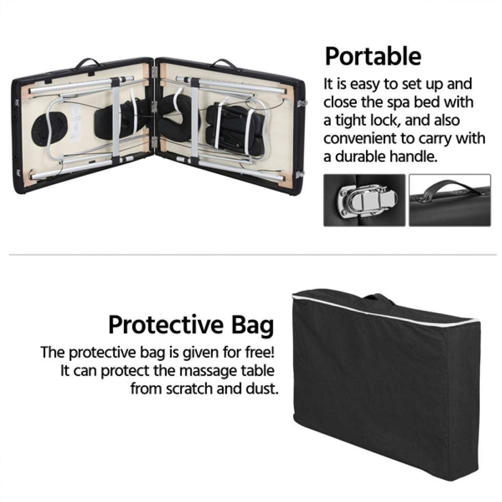 Calm yourself down and relax! Let our adjustable massage bed give you a comfortable massage experience. No matter you want it for home use or professional therapists, this portable spa couch can meet your requirements. The professional facial bed is composed of aluminium alloy support, plastic foot mats, and spongy cushion covered by PVC leather. Give you a stable and soft massage bed for long time service. This folding massage couch can be used for multiple purposes, like home massage, spa, physical therapy, beauty salon, clinic, etc. Enjoy your comfortable massage in this adjustable and portable massage bed now! Take care and stay healthy!