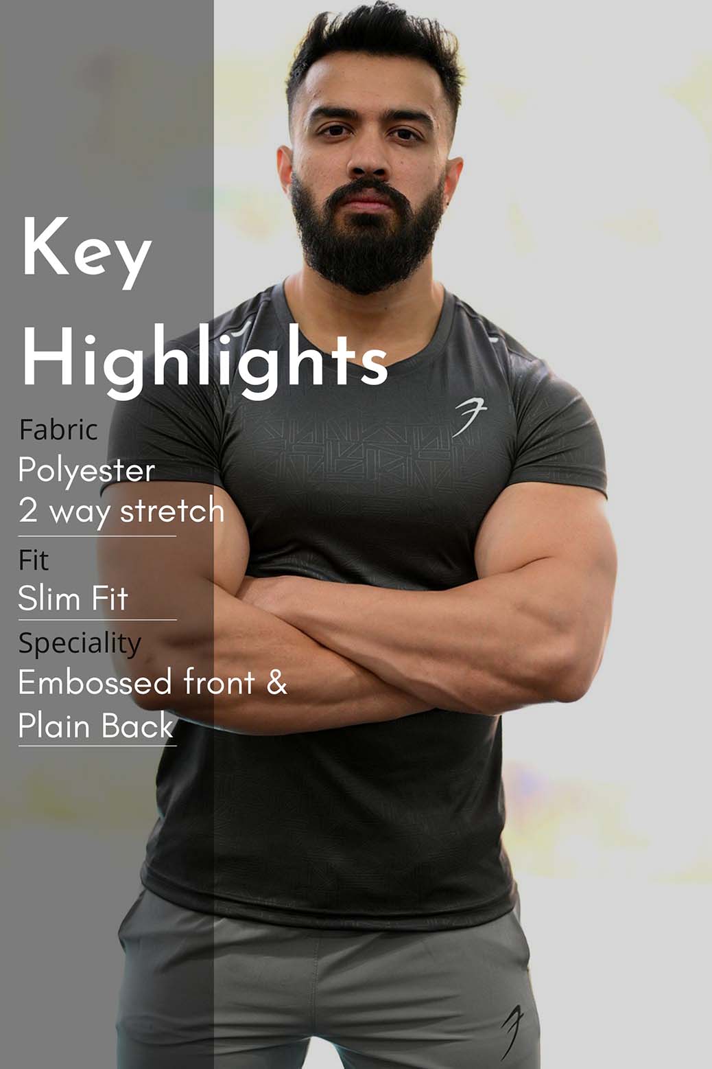 Dark grey Aero t-shirt, slim fit performance tee, cool-to-touch workout shirt, moisture-wicking athletic wear, crew cut sleeves gym top, breathable dark grey t-shirt, fitness clothing, activewear for men.