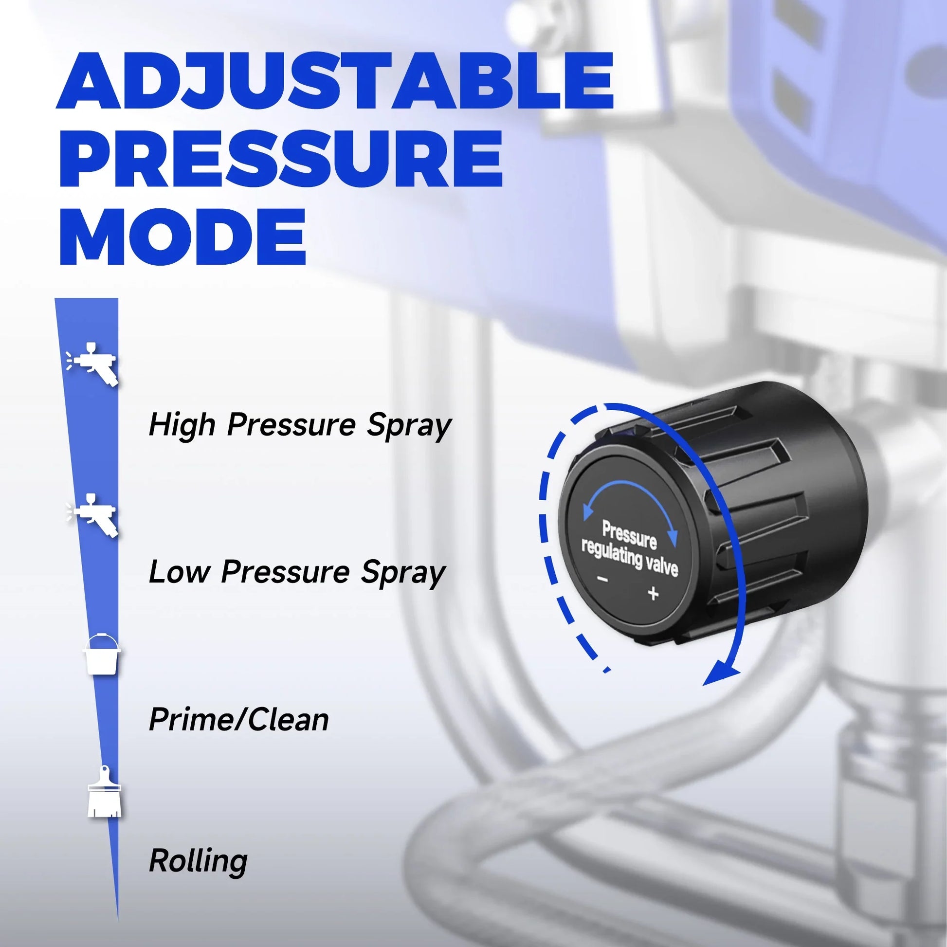 - Adjustable Pressure Control: Pressure settings can be adjusted using the control valve and gauge for different paint types and surfaces.