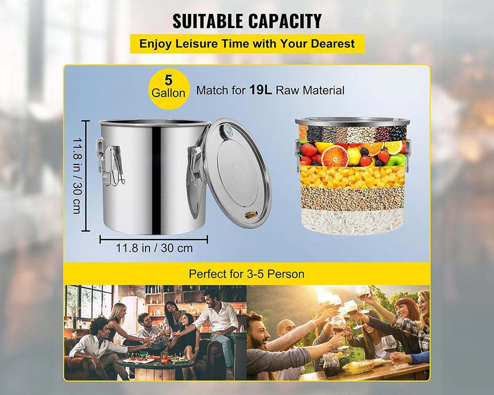 Still 5 Gal 21L Stainless Steel Water Alcohol Distiller with Copper Tube - Home Brewing Kit with Built-in Thermometer for DIY Whisky, Wine, Brandy (5 Gal, Silver) Alcohol Distiller Machine Brewing Equipment DIY Whiskey Home Still