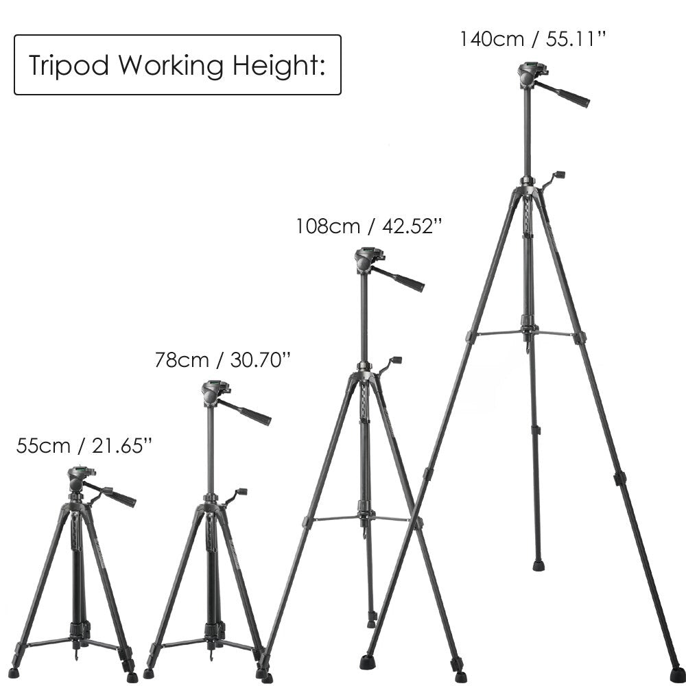(55-Inch) Aluminum Camera Tripod, Universal Lightweight Camera Tripod with Carry Bag for All Smart Phones, Gopro, Cameras