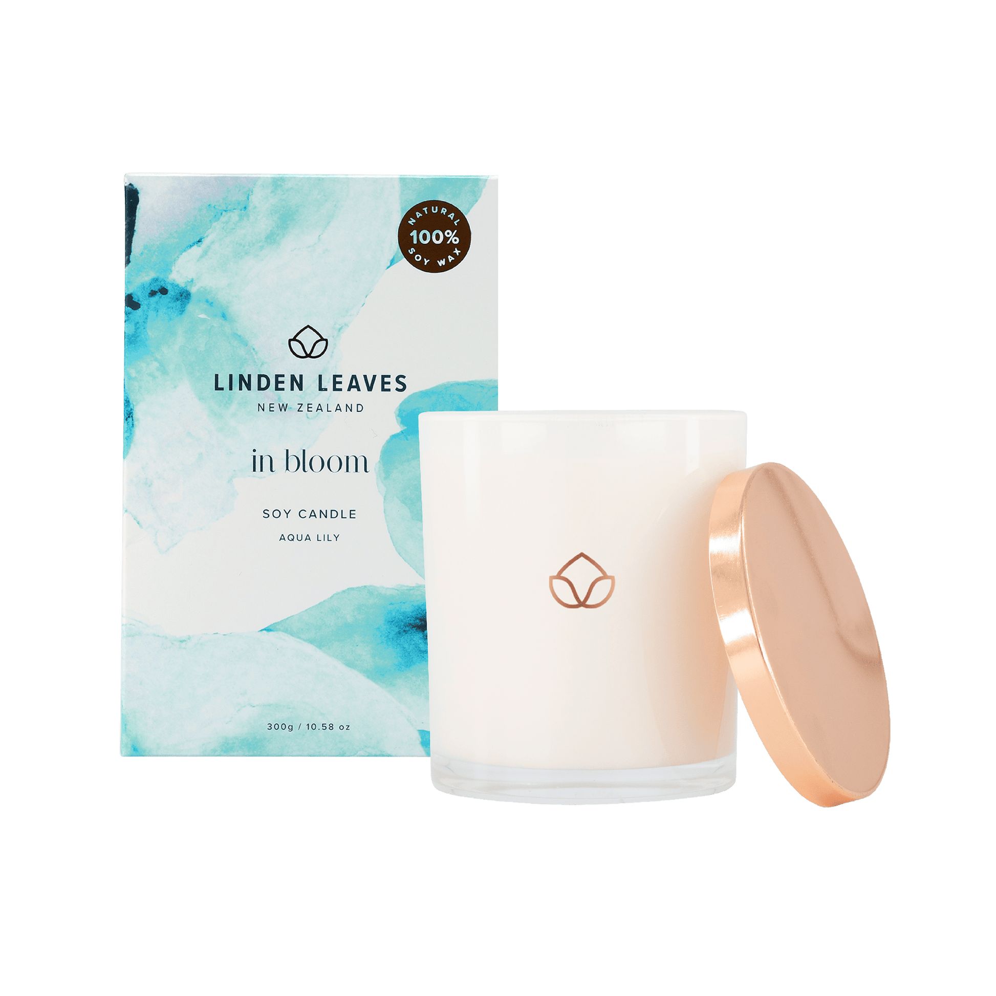 Individually hand poured in New Zealand using clean, environmentally friendly, natural 100% soy wax. Beautifully fragranced with fresh top notes of citrus and pear, layered over a bouquet of marine, green florals and lily. Fine fragrance exclusive to Linden Leaves.