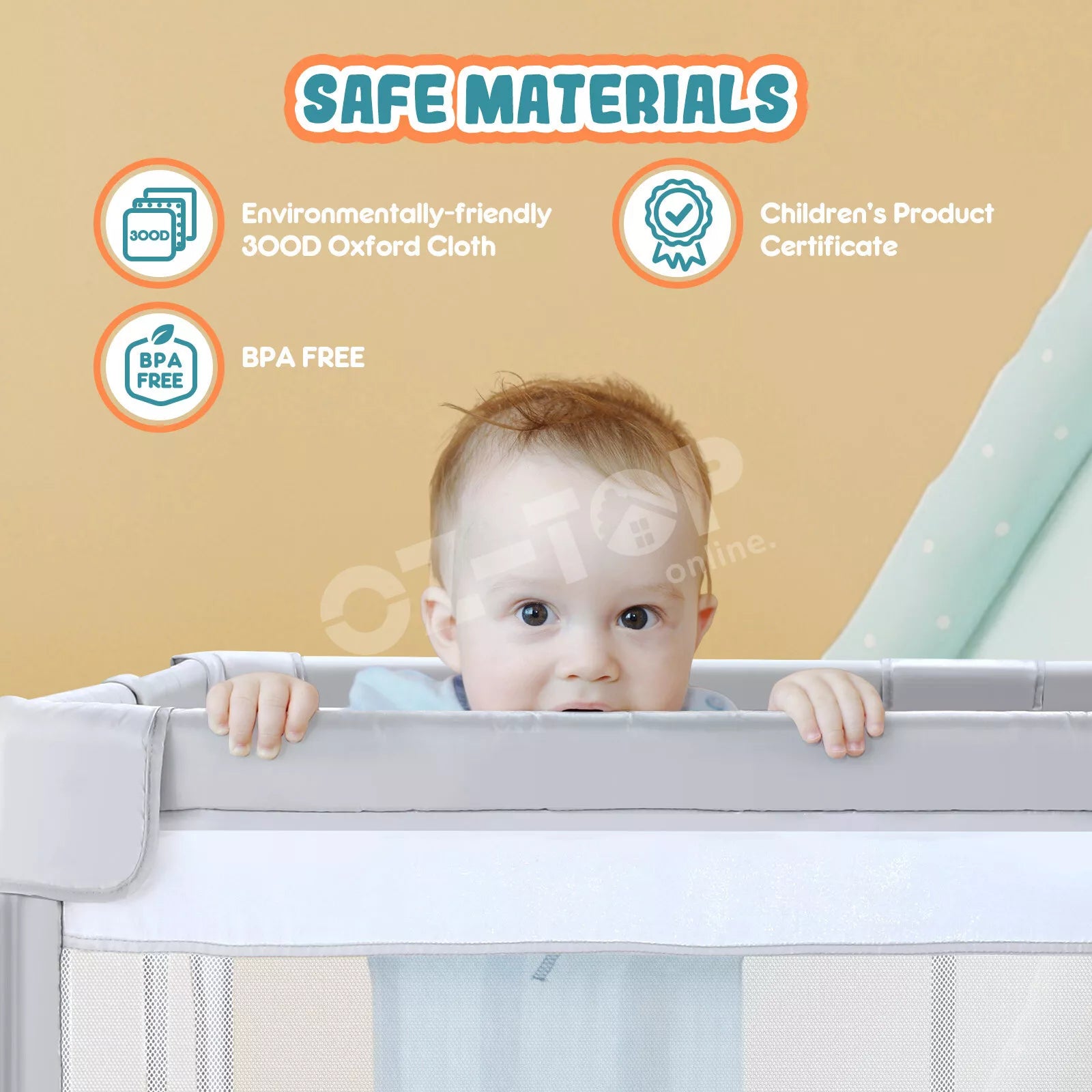 - Safety-Centric Design: The Kids Baby Playpen features stable, robust steel tubes, durable Oxford cloth, and safe, non-sharp polypropylene connectors.