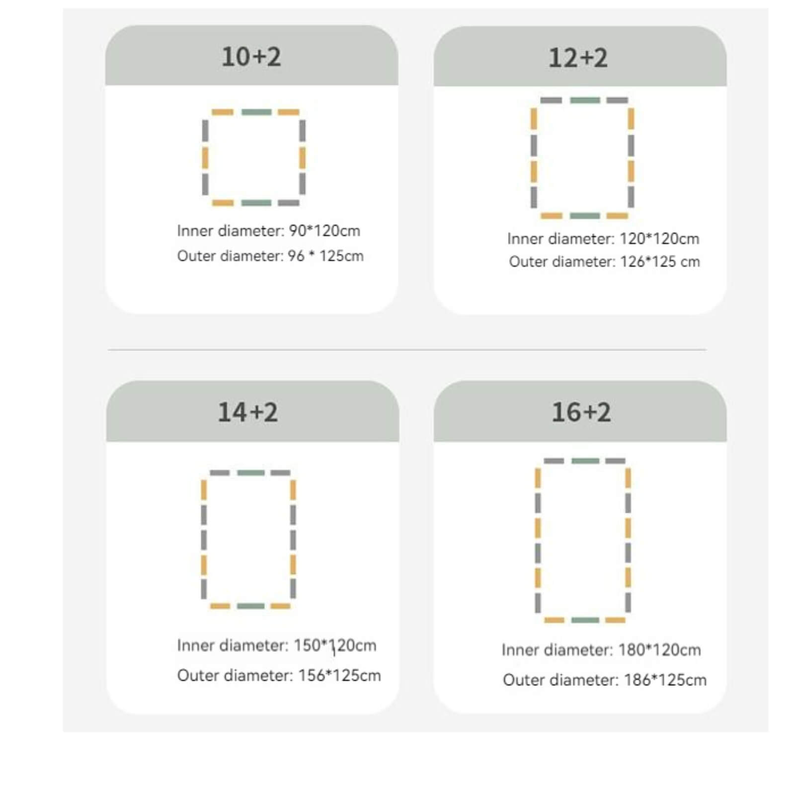 Inner diameter: 120 * 120cm; Outer diameter: 126 * 125cm.