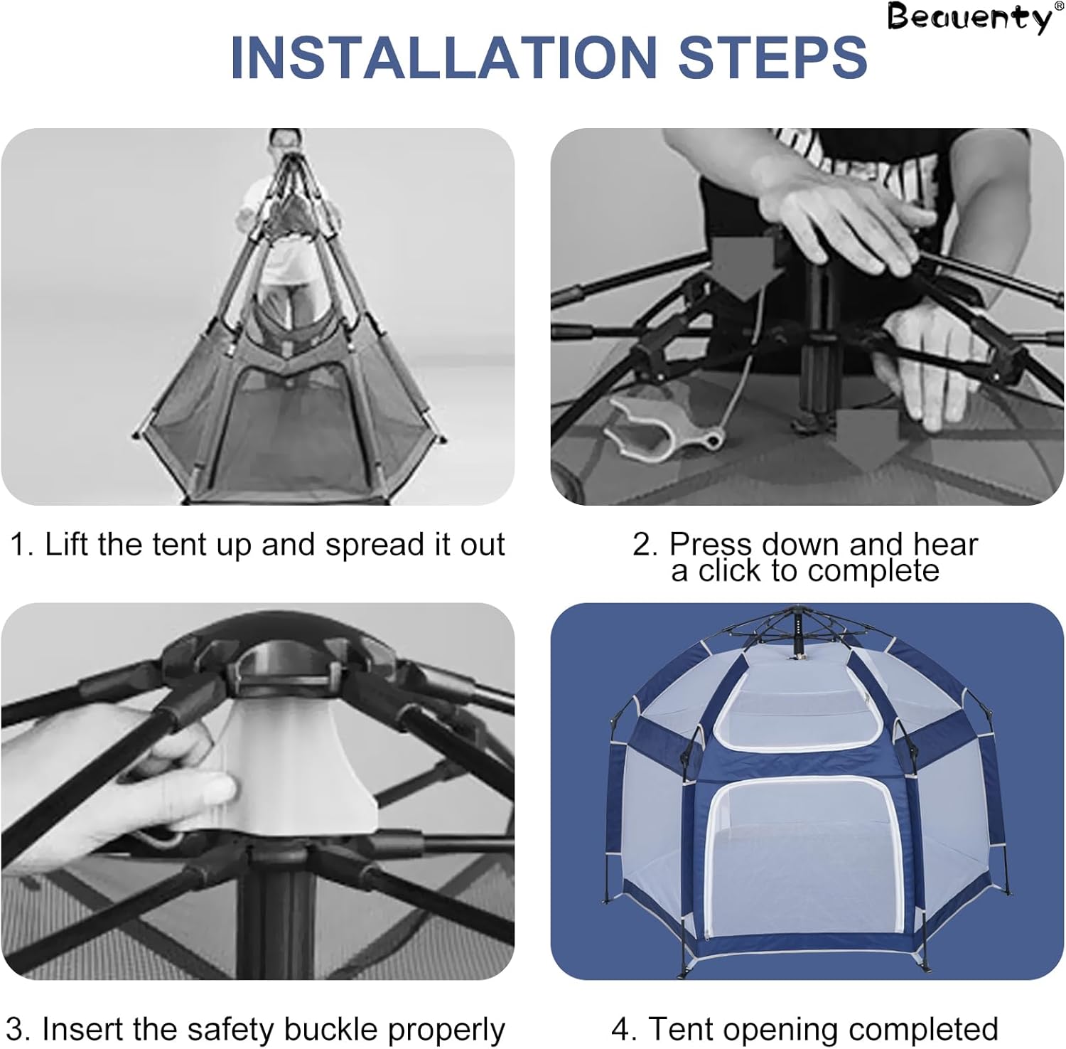 This Instant Pop-Up Kids Playpen is built with a lightweight, reinforced fiberglass frame, ultra-durable nylon and breathable mesh, the unique pop-up release allows you to effortlessly set up and take down the playpen within seconds.