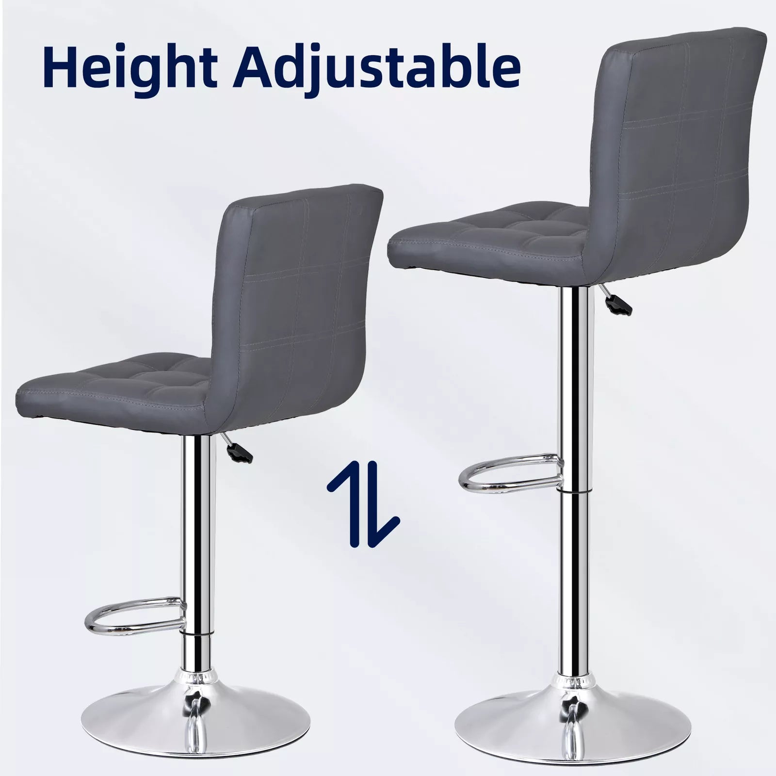 - 2 × Adjustable Swivel Bar Stools (Grey PU Leather)