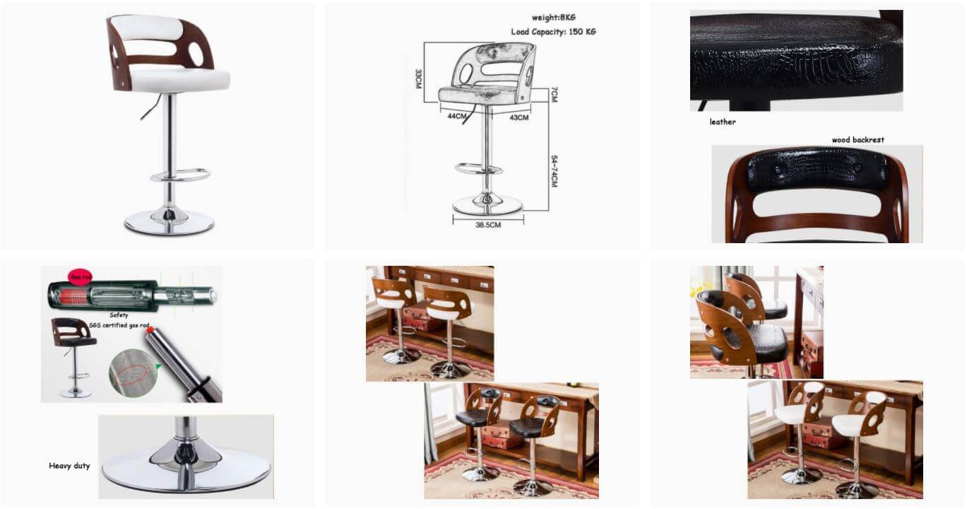 Elevate the style of your bar area, counter, or kitchen with our retro-inspired bar stools. Featuring a faux leather cover and filled with high resilience foam, these bar stools combine comfort and sophistication. The wood backrest adds a touch of retro charm, while the adjustable swivel design ensures versatility and convenience. With a gas lift mechanism and a chromed plate base, these bar stools are sturdy and durable, supporting a maximum load capacity of 150 kg. Cleaning is a breeze with a simple wet cloth scrub, allowing the stools to dry naturally.
