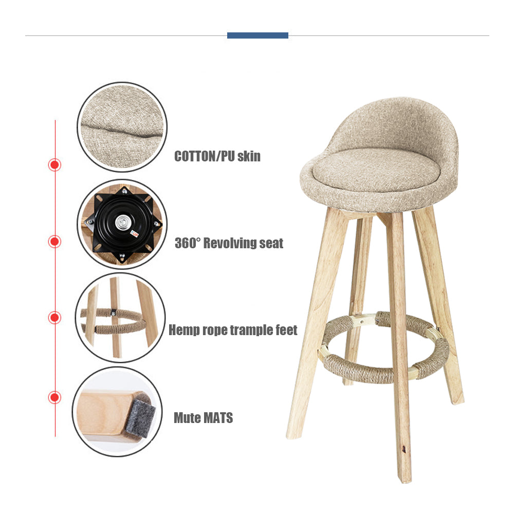 Bar Stools Chair High Feet Wood Chaise De Bar European Modern Bar Stools Chairs cream color