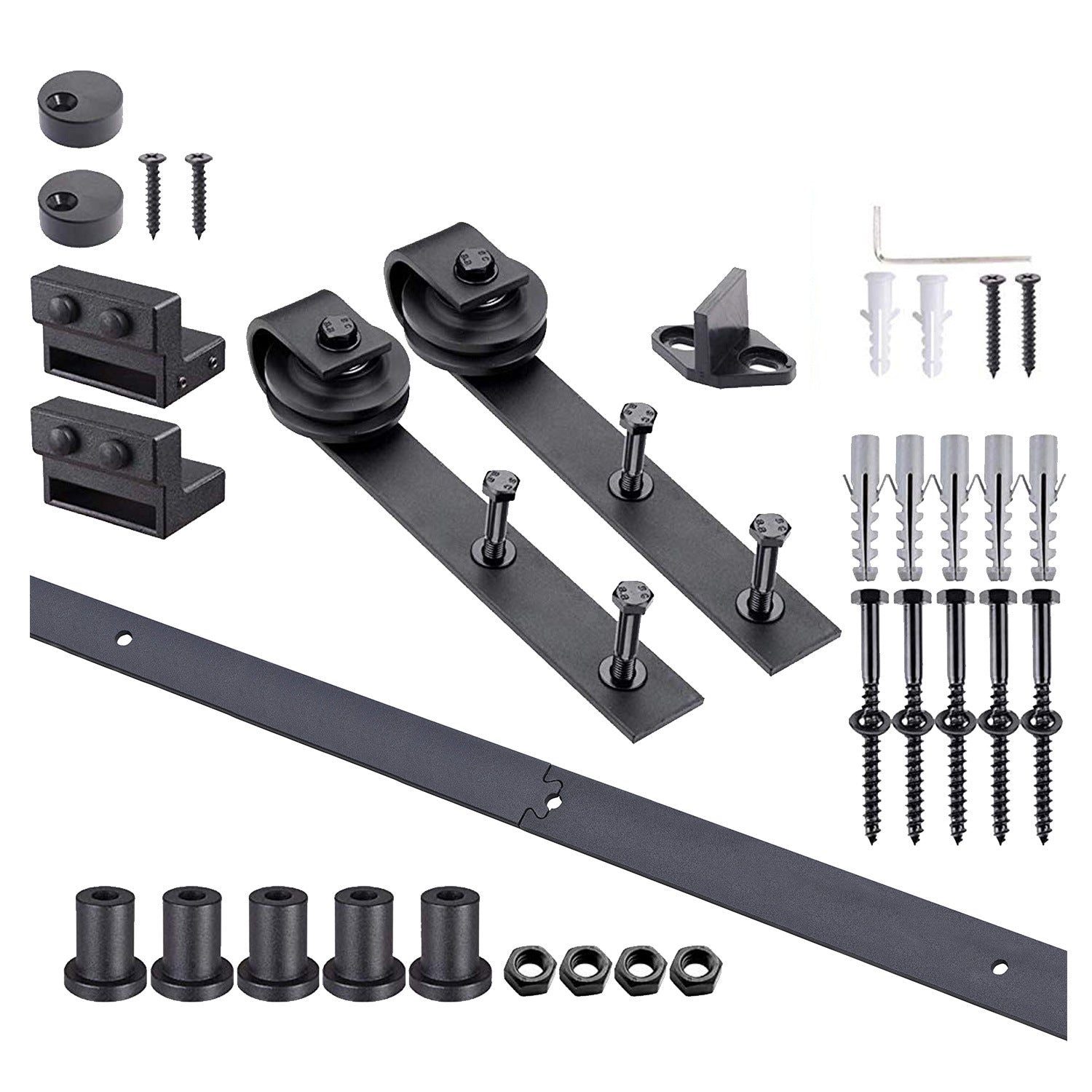 - Sturdy and Durable Barn Door Hardware: Made from high-quality heavy-duty iron with precision craftsmanship. The powder-coated finish ensures safety and reliability.