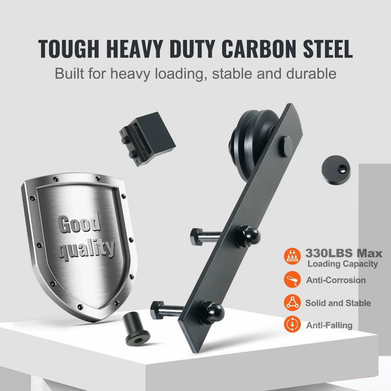 Crafted from premium powder-coated carbon steel, this Barn Door Hardware kit provides exceptional durability and long-lasting corrosion resistance. With a weight capacity of 330 lbs (150 kg), this Barn Door Hardware is designed to support heavy doors with ease. -