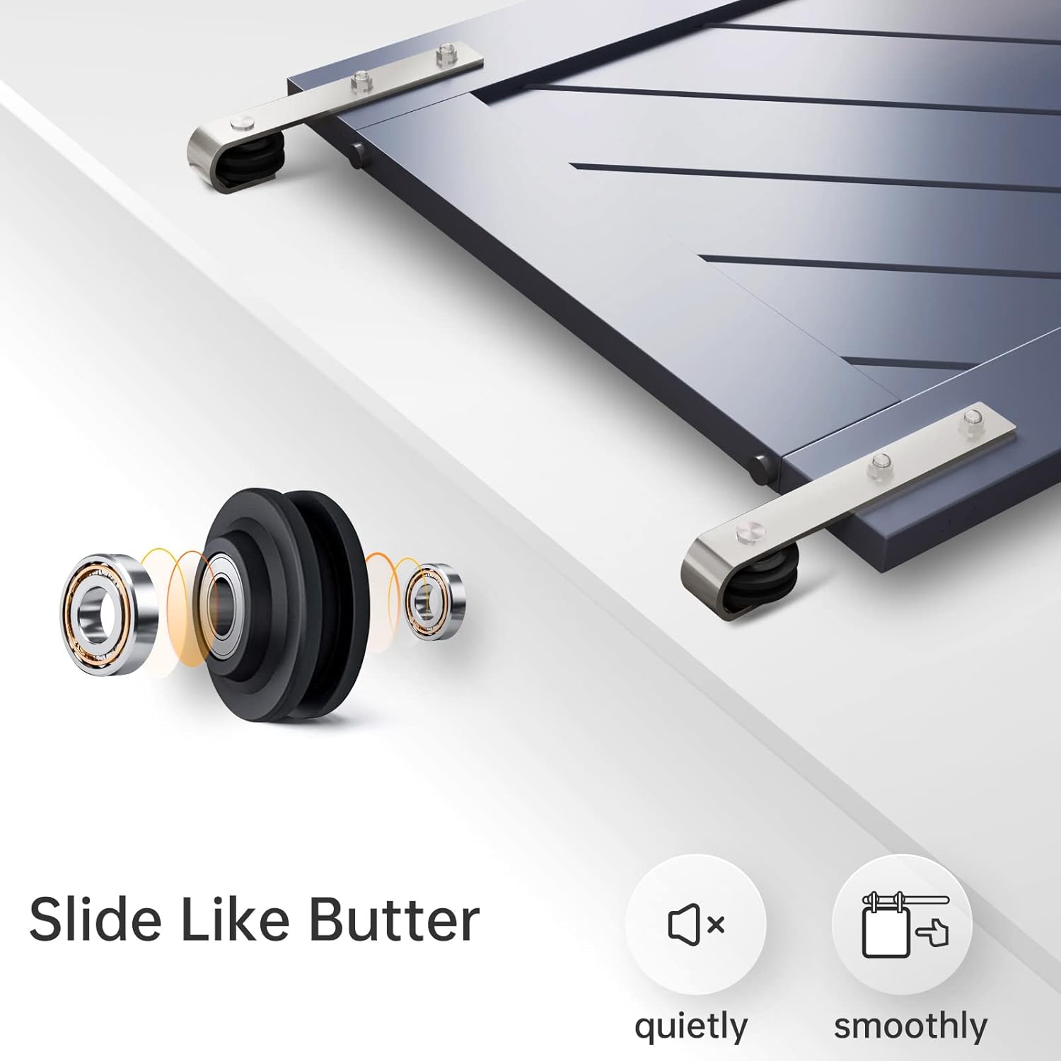 - Smooth & Quiet Operation: Stainless steel rollers glide effortlessly with minimal noise, making this Barn Door Hardware ideal for quiet spaces.