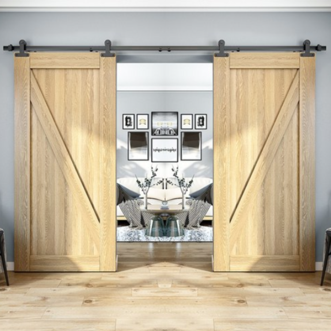 Elevate the look and functionality of your space with this Barn Door Hardware Kit, expertly crafted from high-quality carbon steel for durability and outstanding performance. This versatile Barn Door Hardware solution ensures smooth, quiet sliding for double doors, offering a perfect blend of strength and style. Ideal for kitchens, bathrooms, laundries, warehouses, or modern interiors, this Barn Door Hardware enhances your home while saving valuable space.