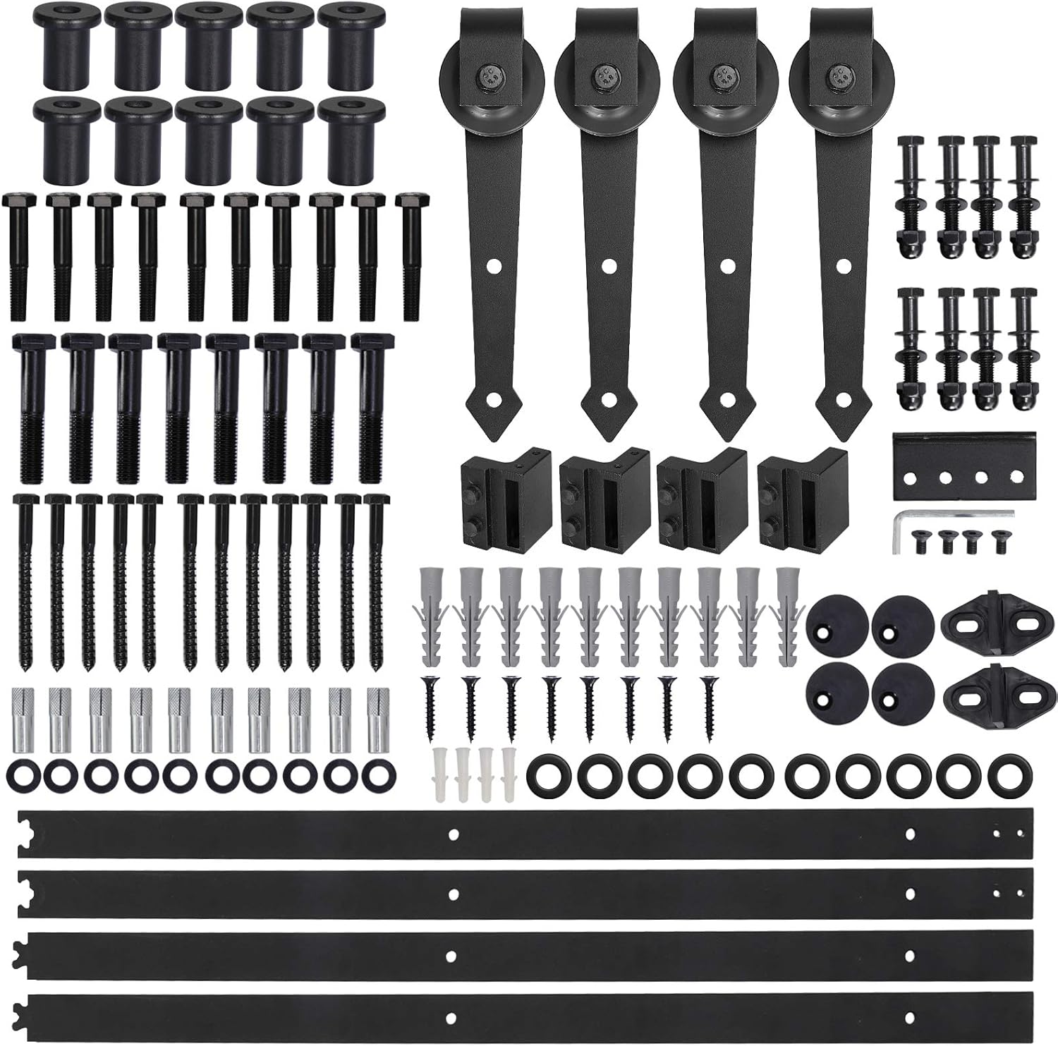 Everything you need for a quick, hassle-free installation is included. The Barn Door Hardware set comes with hangers, tracks, clamps, fasteners, floor guides, and all essential hardware — making installation straightforward even for DIY enthusiasts. -