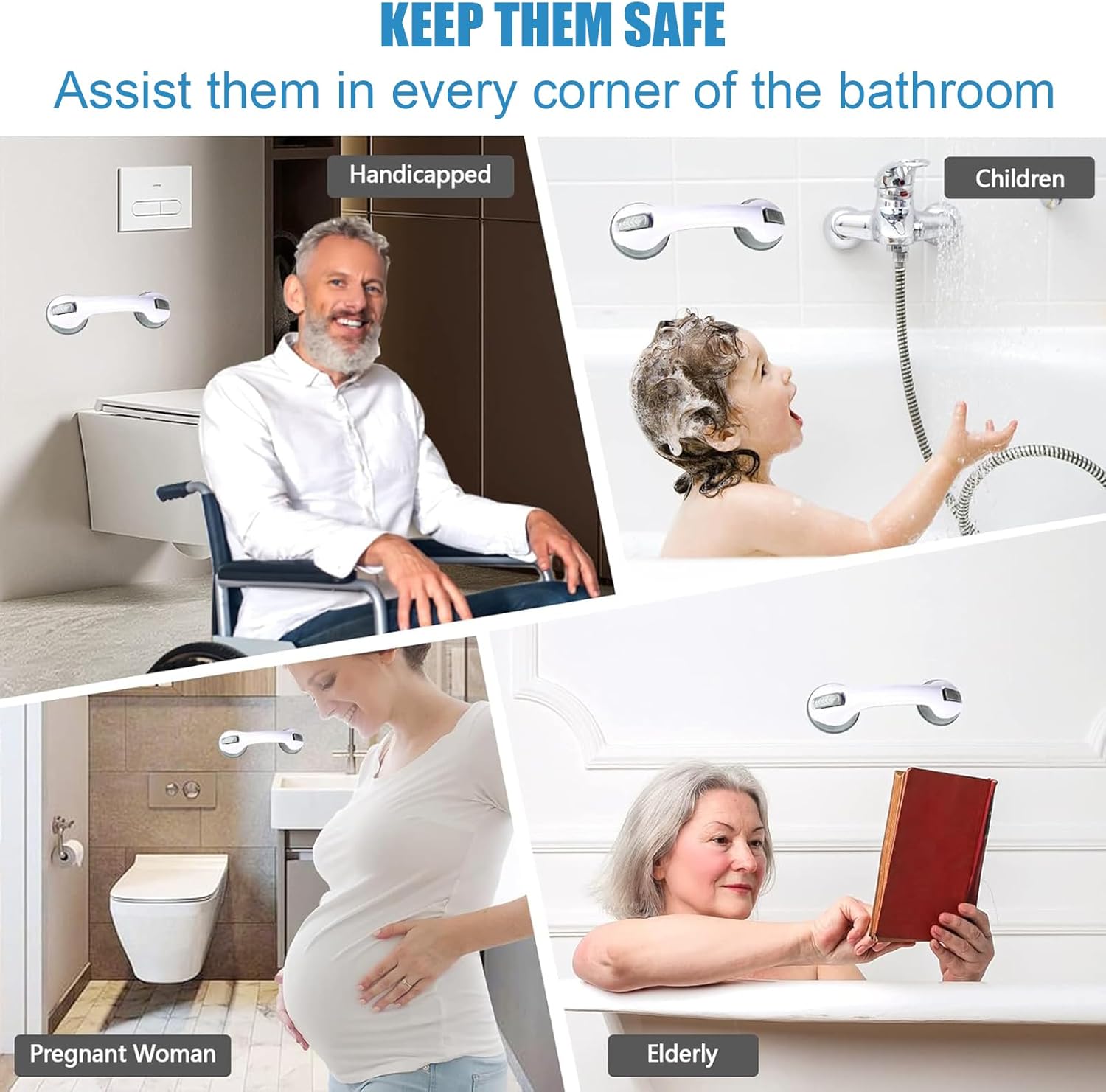 - High Safety & Durability: Made of premium ABS and PVC, this grab bar offers a strong and reliable grip. The two enlarged suction cups firmly adhere to smooth surfaces, ensuring maximum safety for seniors, pregnant women, children, and individuals with mobility issues.