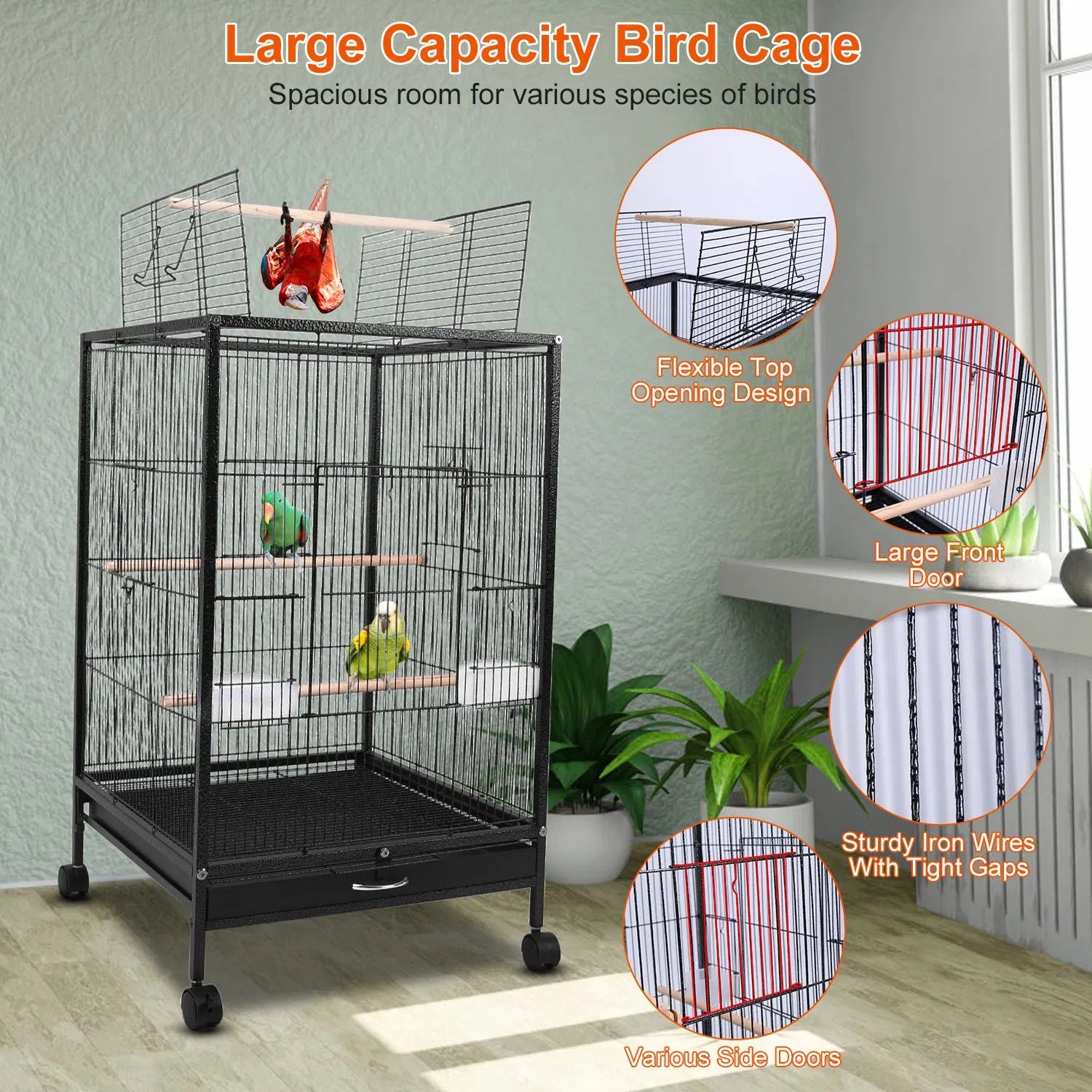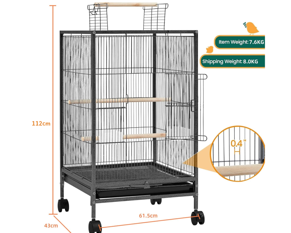 - Portable & Stable: Four wheels allow the Large Metal Bird Cage to move easily while keeping stability.