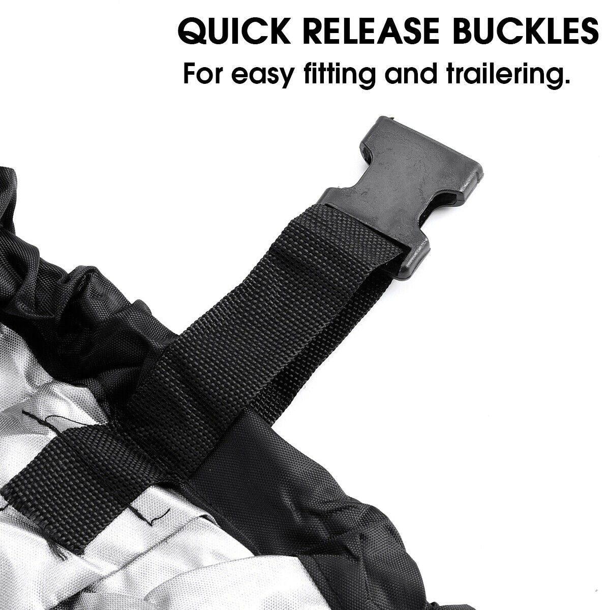 Better fixing and storage: 3 adjustable straps with buttons to help you securely cover the boat cover against the wind and rain. A storage bag facilitates the folding of the boat cover.