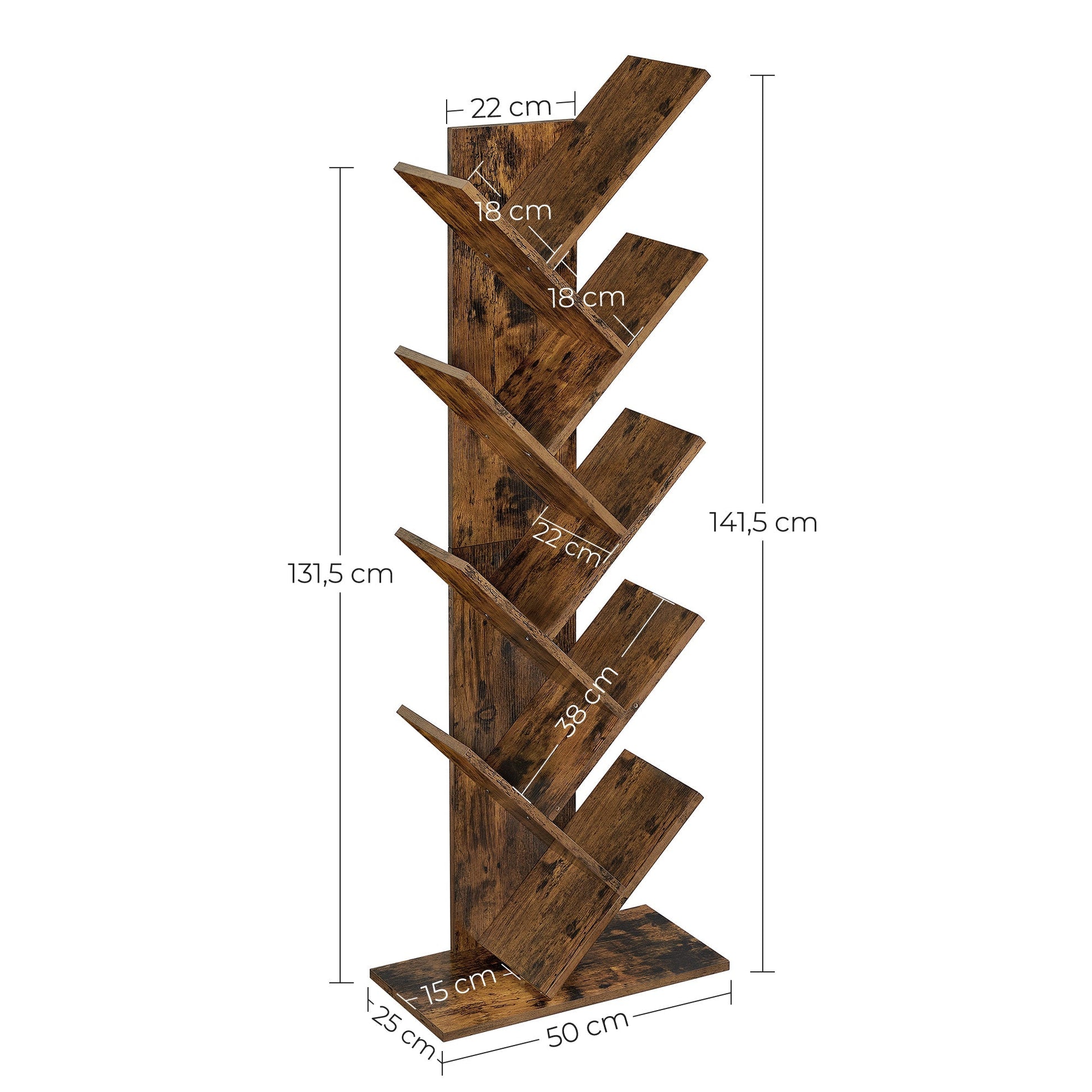 Introducing the VASAGLE Tree Bookshelf - a stunning 8-tier bookcase designed to blend functionality and style. Perfect for living rooms, home offices, or any small space, this rustic brown bookshelf is both a practical storage solution and a decorative element.