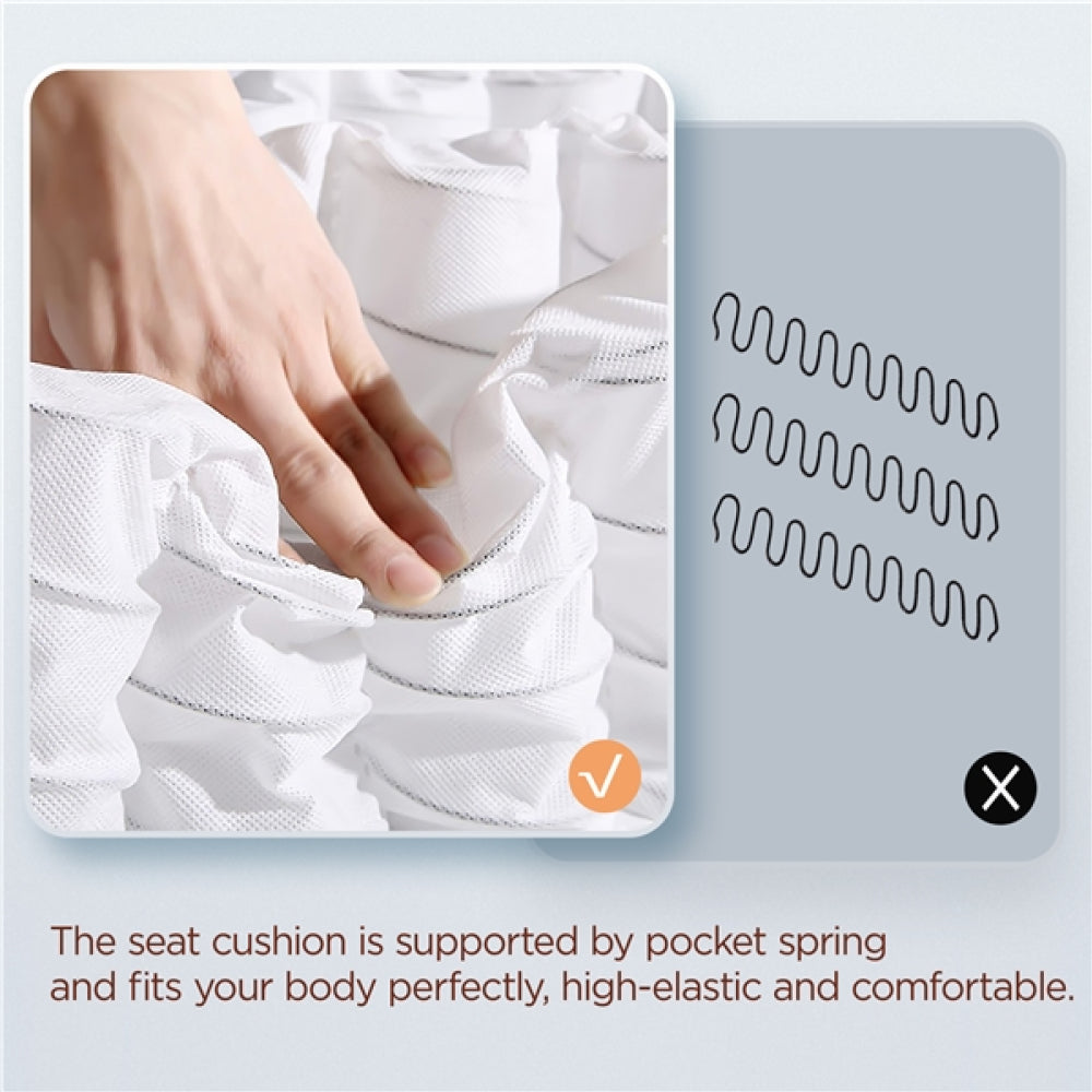 An ideal combination of comfort and style - this boucle recliner is crafted with a sturdy engineered wood frame, soft and warm boucle upholstery, plush fiber fills, and resilient pocket springs, easily supporting up to 120 kg. Adjust the backrest and footrest to your preference - sit upright, elevate your legs, or lay flat. A gentle push on the backrest effortlessly lifts the footrest to three different angles. Sink into the marshmallow-like softness of the seat and backrest after a long day. This recliner is here to pamper you and provide the ultimate seating experience. Whether you place it in your living room, bedroom, home theater, office, or any other space, this reclining sofa is a fantastic addition that will elevate your space to new levels of comfort and sophistication.