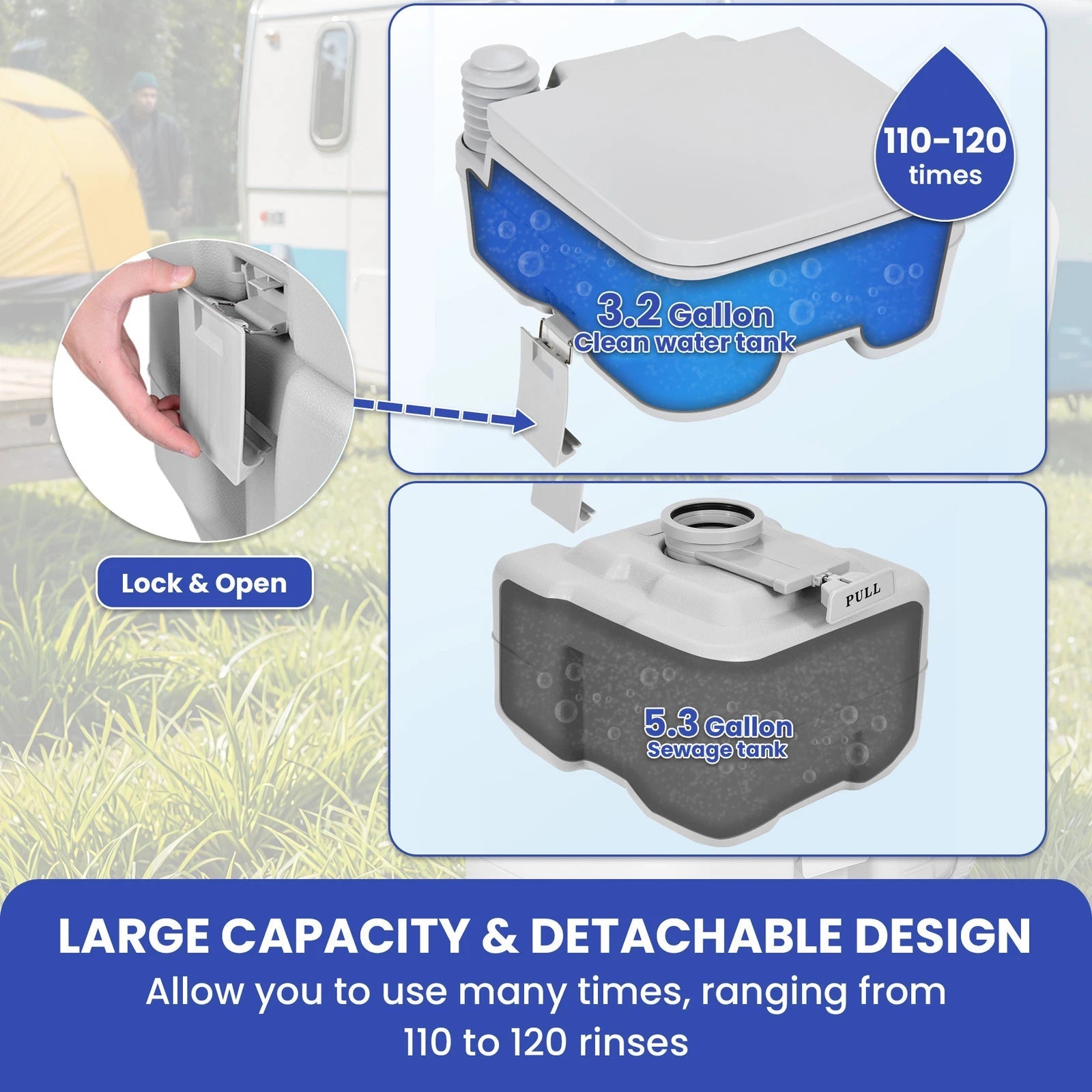 - Large 20L Waste Tank & 12L Fresh Water Tank – The Camping Toilet gives you up to 50 flushes per fill, making it perfect for family trips and extended outdoor stays.