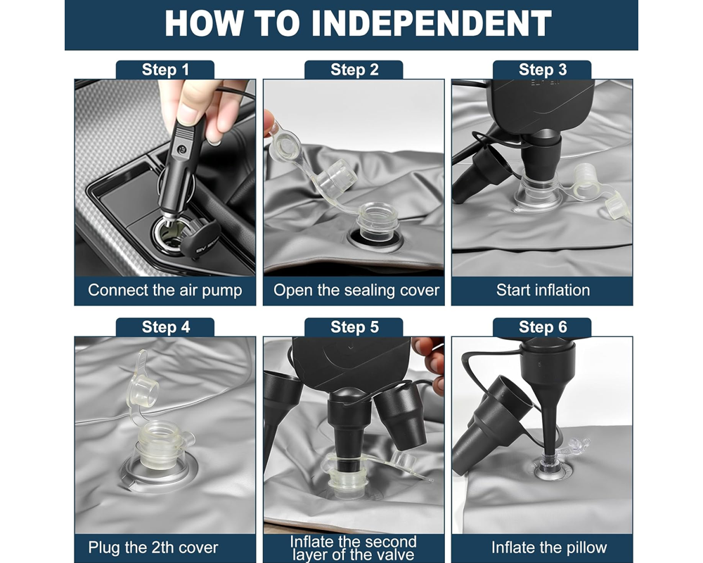 - Fast Inflation System: The Car Air Mattress features 6 independent air chambers and includes an electric pump for quick setup.