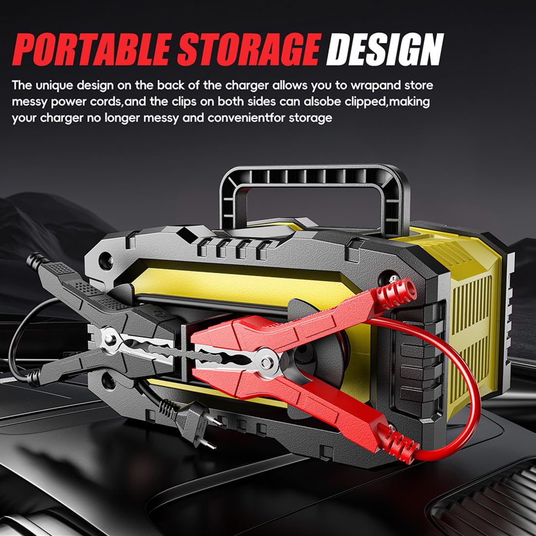 -Multi-Protection Ensures Safety Charging:The Car Battery Charger includes upgraded clips, copper core wiring, frost resistance, and an ABS flame-retardant shell. This Car Battery Charger is fireproof, durable, and corrosion-resistant for safer charging. The Car Battery Charger uses advanced protection to ensure worry-free operation.