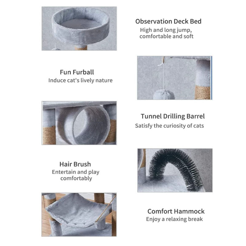 Cat Tree Cat Tower Cat House Multifunctional Cat Climbing Frame, Multi-Level Cat Tower Activity Center Condo,Cat Scratch Covered with Sisal and Elevated Cat Hammock (Light Grey)