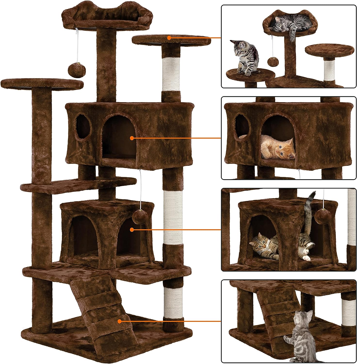 Cat Tree Tower Multilevel Cat Activity Tree Centre Cat Climbing House Cat Condos Scratching Posts Ladder for Kittens, Brown