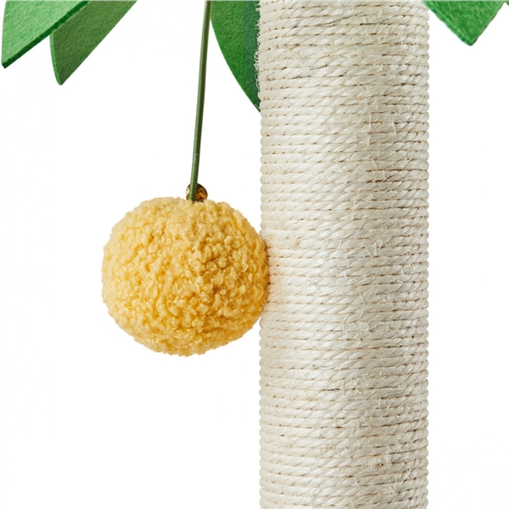 Look, a coconut tree-shaped cat tower! Inspired by the natural views, this cat tree sports a green & yellow color combination with coconut palm leaves details for a vibrant and vivid look. The cat tree with a scratching post is designed like a coconut tree wrapped in sisal rope, which is perfect for keeping their nails clean and healthy. The cat tree is made of safe and green materials for people and pets. A soft cat condo, a cozy platform, and a dangling ball are included to keep your feline friend engaged. These parts form a perfect place for cats to relieve their stress, satisfy the cat's interest in scratching, climbing, and jumping and increase the cats' sense of security, allowing them to relax for short periods when tired.