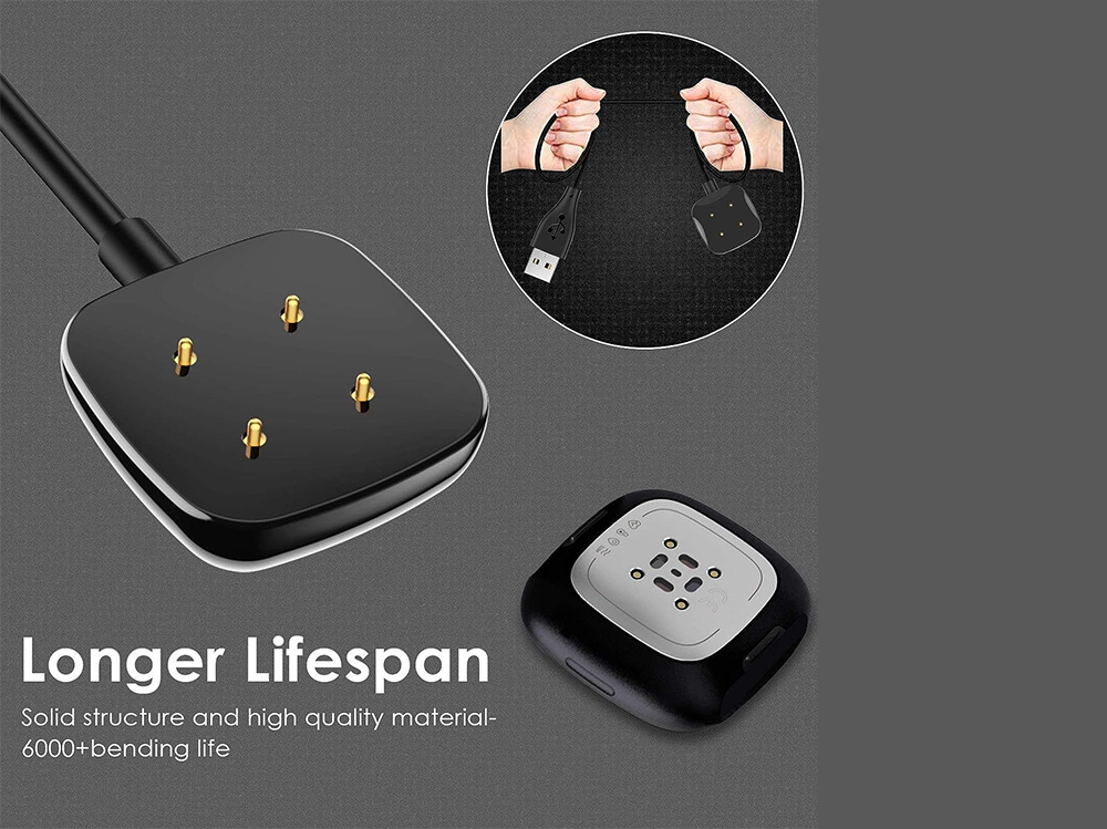 - Durable Construction: Made with reinforced PC and ABS materials, the Charging Cable for Fitbit Sense 1/2 & Fitbit Versa 3/4 withstands over 10,000 insertions.
