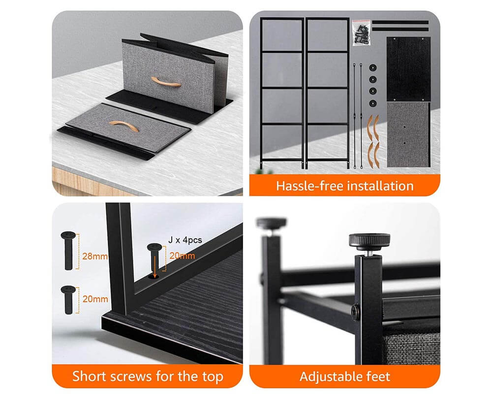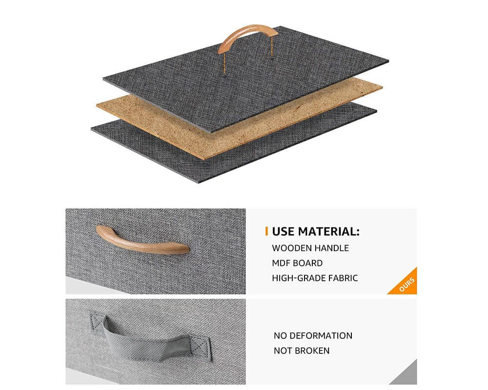 This chest of drawers Tall boy features a solid iron frame with crossbars on the back, Tall boy ensuring both stability and lightweight convenience. The drawers are covered with eco-friendly fabric, free from chemical smells, and Tall boy is equipped with sturdy wooden handles for easy sliding, even when fully loaded.