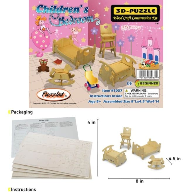 Bring playtime to life with the Children’s Bedroom Wooden 3D Craft Kit — a creative DIY project that lets you build, customize, and decorate your own miniature bedroom furniture set.
