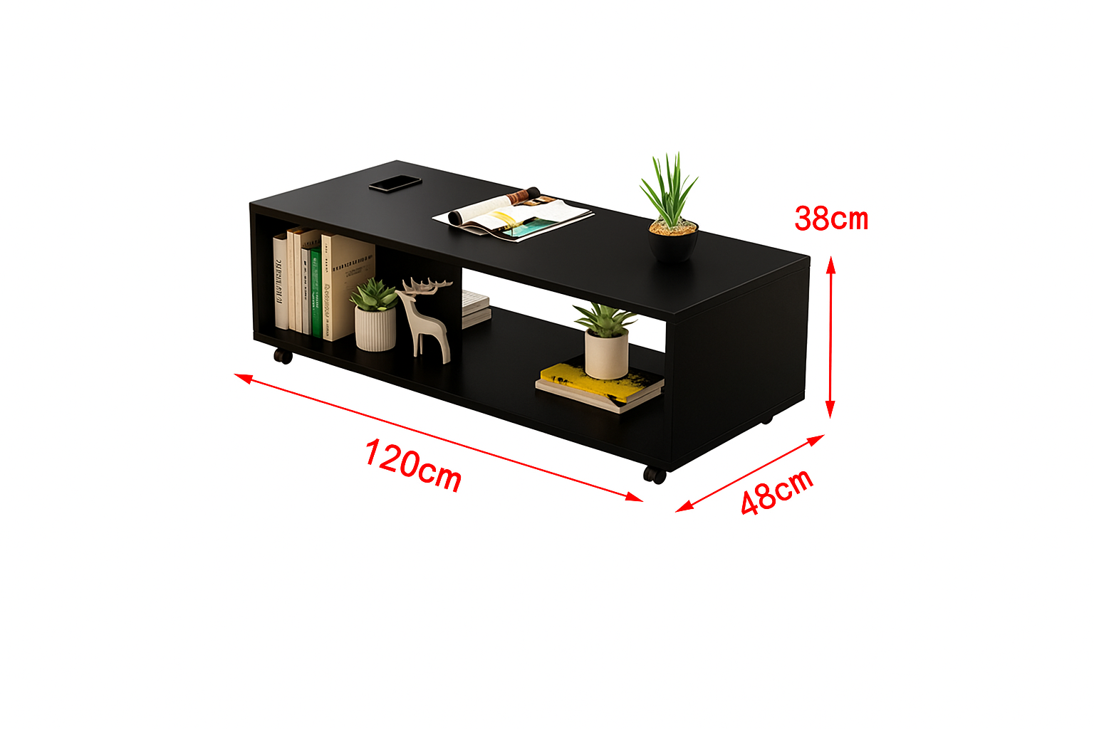 Includes: 1 × Black Coffee Table (120×48×38cm)
