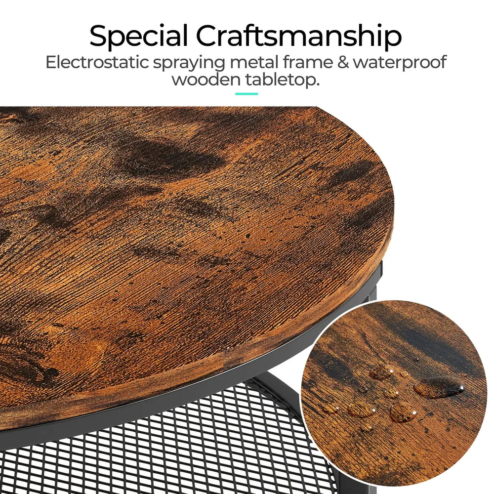 Sturdy & Stable - The round coffee table's curved metal frame between legs provides exceptional strength and stability to the table's structural integrity, while the bottom metal shelf's U-shaped design reduces stress.